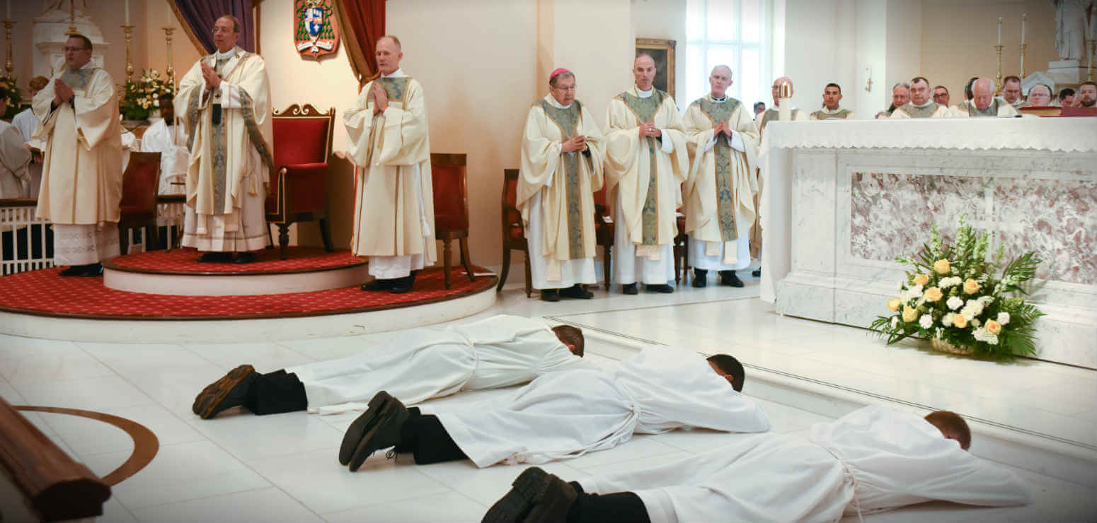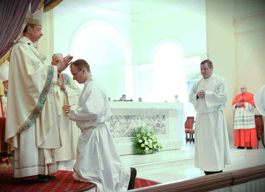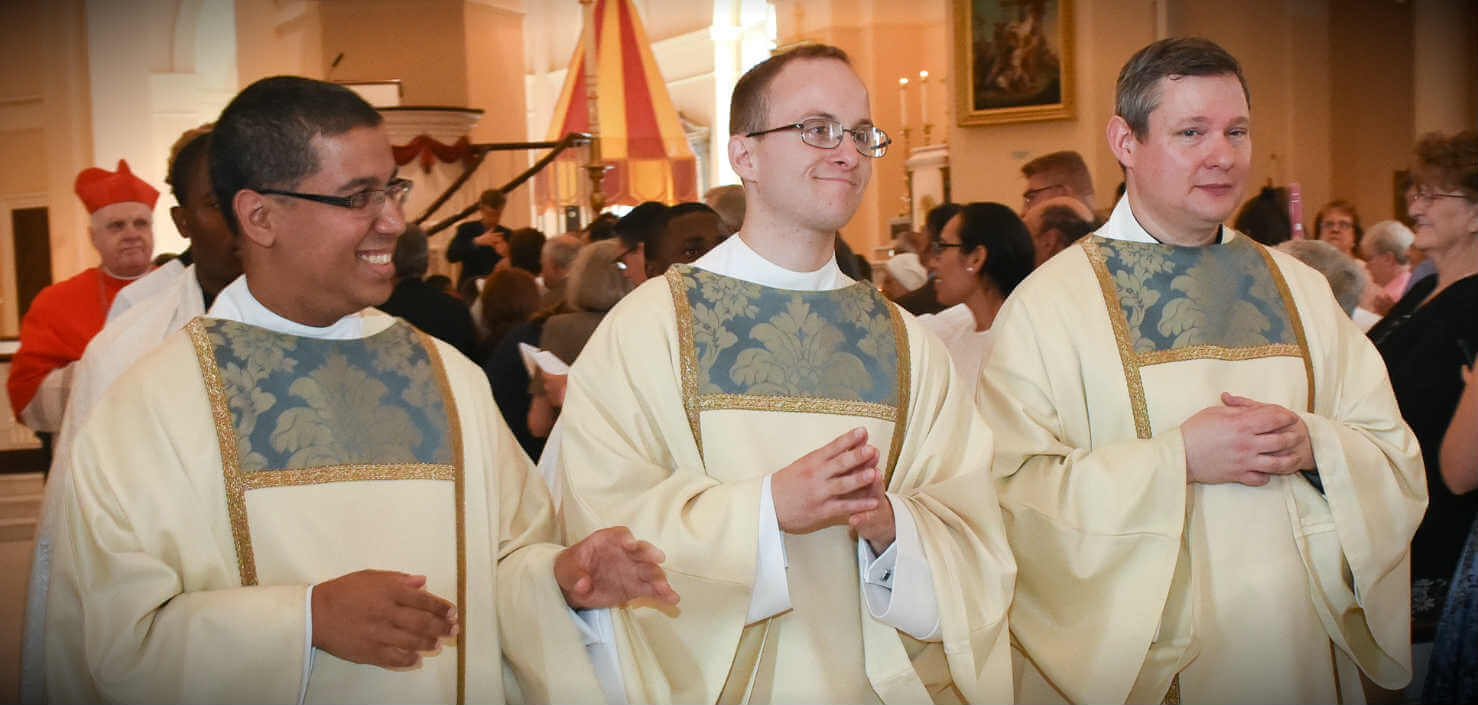 Ordained and vested, Deacons John Martinez, John Streifel and William Keown process out of the Baltimore Basilica following their May 27 ordination. (Photo by Richard Lippenholz | Special to the Catholic Review)Read More