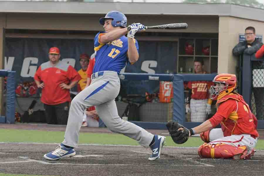 Loyola Blakefield senior Jack Glock crushes a triple to left with bases loaded giving his team a 7-3 advantage over the Calvert Hall Cardinals in the MIAA A Conference championship at Harford Community College May 22. The Dons defeated the Cardinals 8-3 for their first championship since 1946. (Kevin J. Parks/CR Staff)Read More