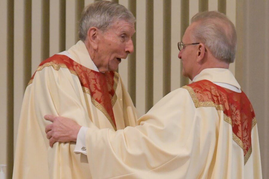 Catholic Community of St. Francis Xavier pastor, Father Frank J. Brauer, right, embraces pastor emeritus, Monsignor Thomas J. Donellan, at the parish’s 25th anniversary Mass celebrated by Archbishop William E. Lori in Hunt Valley May 6. (Kevin J. Parks/CR Staff)Read More