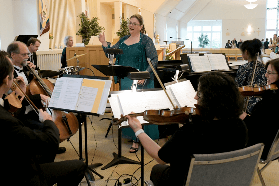 Teresa Guion, coordinator of music ministry at the Catholic Community of St. Francis Xavier, leads the orchestra and choir during the parish’s 25th anniversary Mass in Hunt Valley May 6. (Kevin J. Parks/CR Staff)Read More