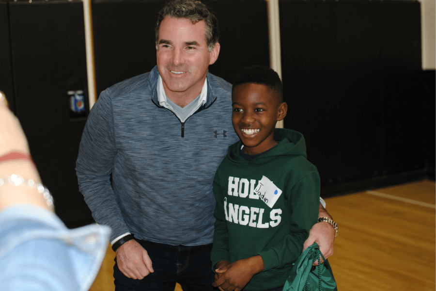 Kevin Plank, Under Armour founder, visits with Jaden Bishop, a fourth-grader at Holy Angels Catholic School who is one of the 83 Plank Scholars from four Catholic community schools visiting Under Armour House at Fayette May 9. (Courtesy Archdiocese of Baltimore)Read More