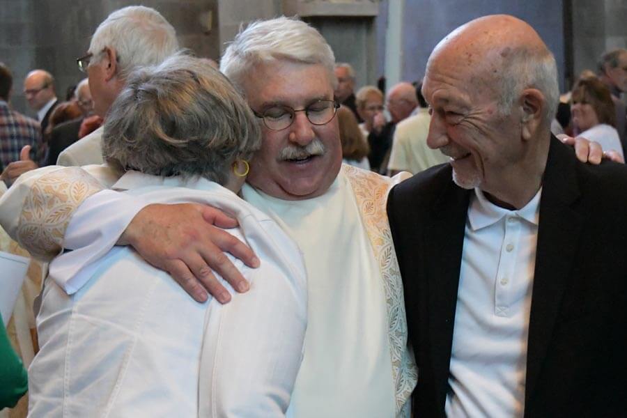 Joseph Wolf receives congratulatory hugs following his ordination to the permanent diaconate by Archbishop William E. Lori at the Cathedral of Mary Our Queen May 6. (Kevin J. Parks/CR Staff)Read More