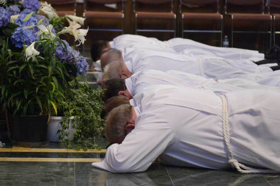 Eight men lay prostrate in the sanctuary of the Cathedral of Mary Our Queen in Homeland during their May 6 ordination to the permanent diaconate. (Kevin J. Parks/CR Staff)Read More