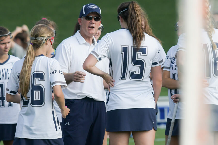 Notre Dame Preparatory School women’s lacrosse coach Mac Ford gives his team advice during a match against McDonogh School at Yeardley Love Field in Towson April 27. The Blazers fell short against a tough McDonogh team 9 - 4. (Kevin J. Parks/CR Staff)Read More