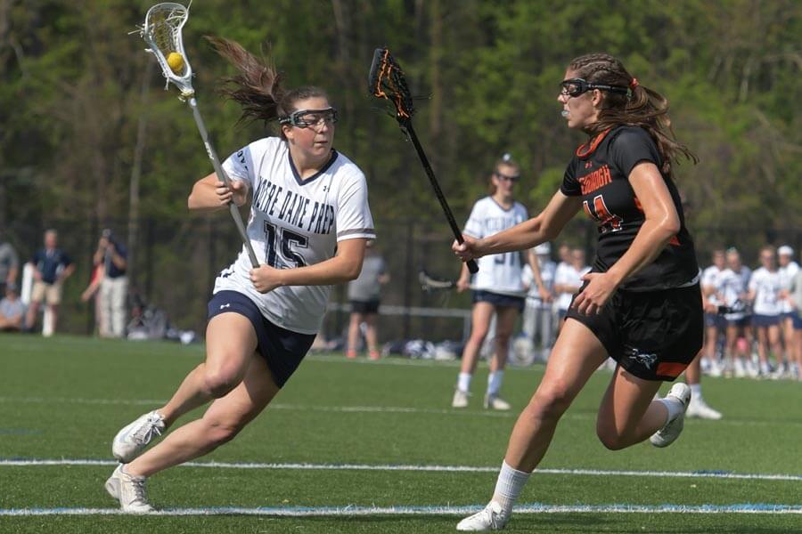 Notre Dame Preparatory School senior Grace Haus charges around McDonogh School’s Maddie Jenner during a home game at Yeardly Love Field in Towson April 27. Haus will attend Florida State University this fall. (Kevin J. Parks/CR Staff)Read More