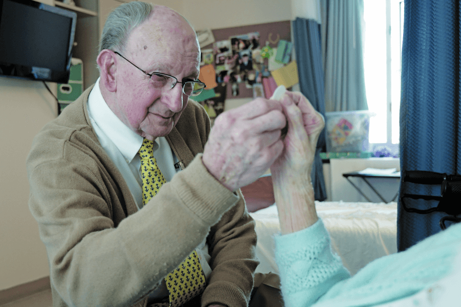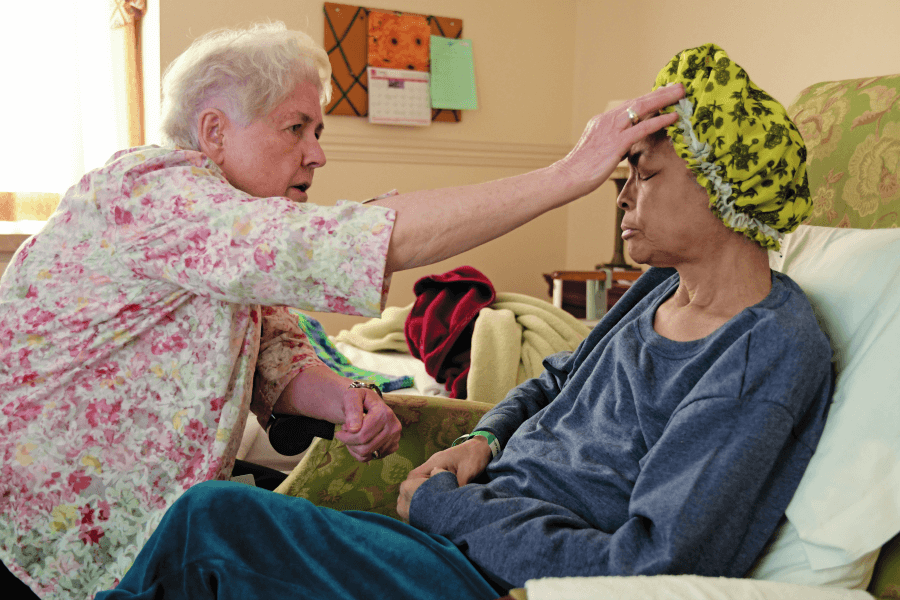 Sister Anne O'Donnell prays with Victoria Thorpe, a parishioner of St. Ambrose in Park Heights, during an April 11 visit to the hospice unit at Stella Maris. (Kevin J. Parks/CR Staff)Read More